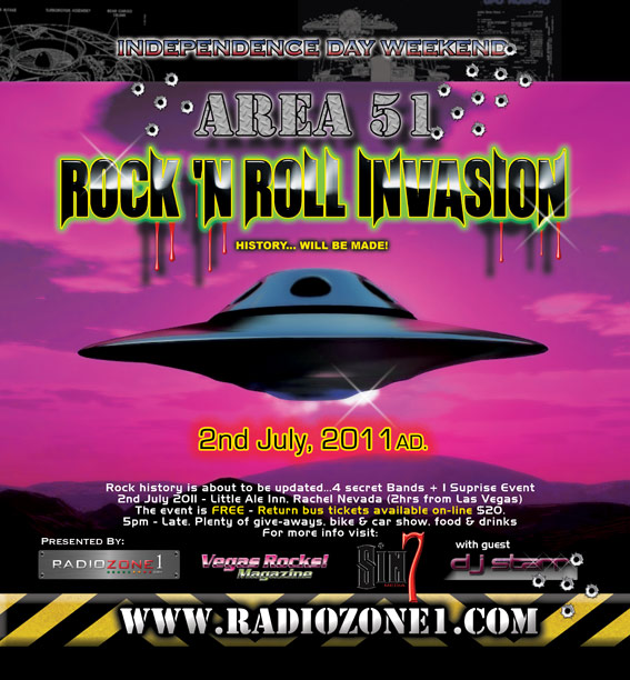 Then in 2011 John had a bright idea to be the first to stream a live concert in full HD (Rock n' Roll invasion - Area 51) from the "Official" front gates of Area 51. The event featured two live bands from Las Vegas on a stage and then one band on the back of a trailer in front of the gates of Area 51. They did this in HD and over dial up internet and wifi. (again this is another story on its own). They pulled off the impossible and reached 7.5 million viewers around the world, not without attracting some unnecessary attention.